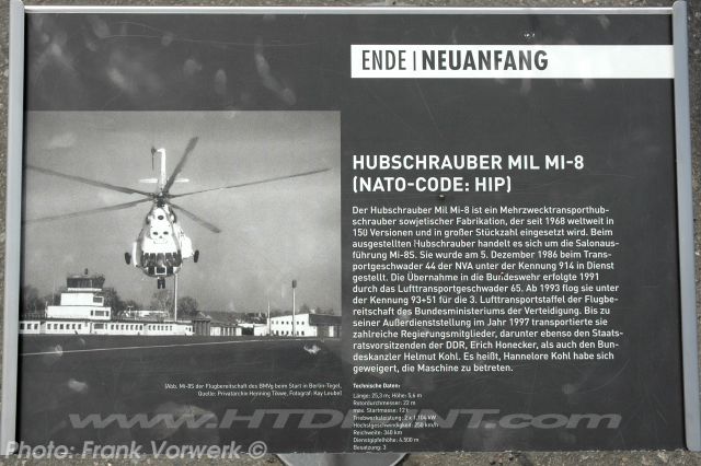 This helicopter was registered in East Germany to the Nationale Volksarmee as 914 and operated by the TG-44 from December 5th, 1986 till October 1990.