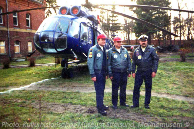 This helicopter was registered to East Germany as NVA-831 on March 25, 1977, and operated by the MHG-18 Kurt Barthel from June 21, 1977. It had to make a precautionary landing due to heavy vibrations at 12.07hrs on the December 2, 1982 at Doelitz near Gnoin (Kreis Teterow). Back in service till March 1991.