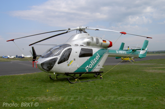 This helicopter was regd. in the USA as N70389 (2) with Mode-S Hex: A96345 by McDonnell Douglas Helicopter from 23.01.2002 till 05.05.2004 as exported to Germany. On Tuesday evening, the 10th of May 2011 at around 19.00hrs, a 77-year-old, disoriented woman was missing out of a nursing home in Engelsbrand. To find here in the dark, this police helicopter from the Innenministerium Baden-W?rttemberg was called from its out post base at Karlsruhe/ Baden Baden (EDSB) to assist the search by using its FLIR imaging camera. While part of the missing person search, this helicopter had crashed for yet unknown reasons at around 21.30hrs into the forest near Engelsbrand. The three crew members were reported severally injured with the two pilots being freed from the wreckage by fire fighters and heavy equipment. The woman officer responsible for the FLIR camera operations was found badly injured outside the wreckage as probably thrown out in the crash. They were taken to nearby hospitals. The Federal Aviation Investigation (LBA) was notified and arrived on the site. The criminal investigation has also included investigations from Pforzheim. The large-scale search resumed in the forest also by a police dog that had found the 77-year-old woman unharmed. A total of 40 fire brigades and 30 officers of the Police Department were used in this accident and search from Pforzheim. The two seriously injured pilots are reported on the following day, no longer in danger after there emergency surgery. Cancelled as destroyed since the 10th of February 2015.