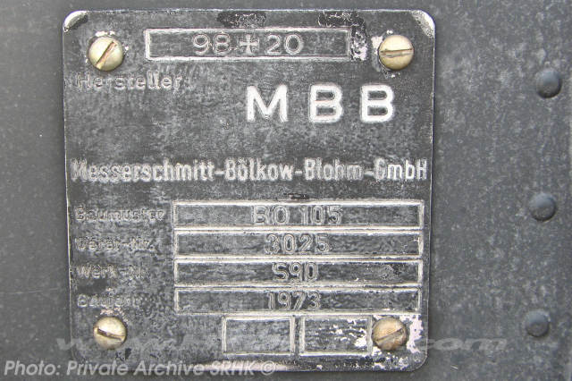 This helicopter became registered to the West German Bundeswehr as 98+20 till it was SOC as PWFU.