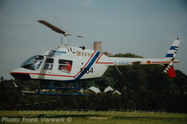 This helicopter was regd. in Germany and operated by Meravo Luftreederei GmbH as D-HAUE (2) from1992 till December 2016. After the German army decommissioned the BO105P's in December 2016, the need for another basic training helicopter occurred. The tender for a new helicopter required also particular training procedures, such as autorotations. Meravo was awarded the contract in December 2016 after successfully bidding during tender with six Bell 206 JetRangers. The German operator Motorflug has commenced maintenance and operations on base with the military training contract at the B?ckeburg. Motorflug has provided this helicopter re-registered with D-HMFD with Mode-S Hex: 3DF2D5 as the first in a small ceremony held at B?ckeburg by Achum (ETHB) on the 16th of March 2017.