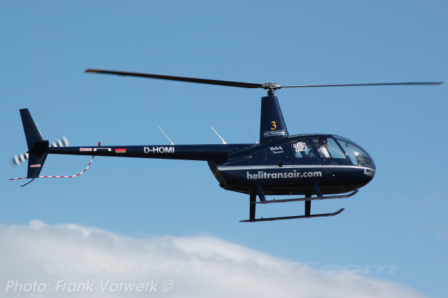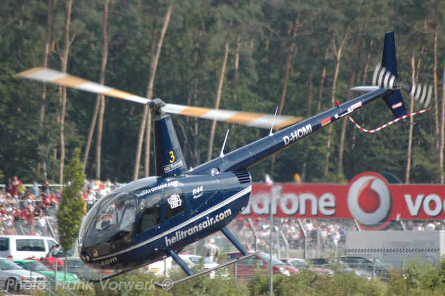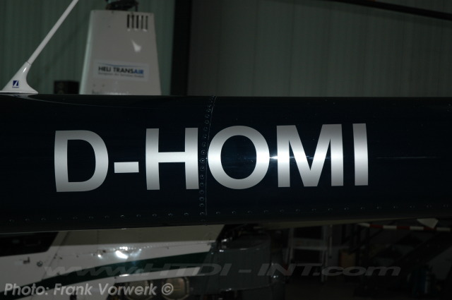 This helicopter was in for a great bet in a German TV series called Wetten Dass??? hosted by Thomas Gottschalk during the 26th of January 2008. It was a out door bett and located in the Stadium of Dortmund. The bett was to open 4 boudles of bier in 3 minutes using this helicopters landing skid regd. as D-HOMI flown by Mr. Jan Veen from Hessen. He had won the bet and was also the beting king from thise TV series for 2008. This was substantially damaged after an emergency landing in the private grounds of a golf hotel near Boppard on the river Rhein in Rheinland-Pfalz on Sunday the 29th of July 2012. It is reported by local news that this was during lift off with its pilot and three passengers on board, when it had lost power for some unknown reason and came to rest still upright with substantial damage about 20 metres away from its helipad. The four occupants received minor injuries. Since cancelled as stored.